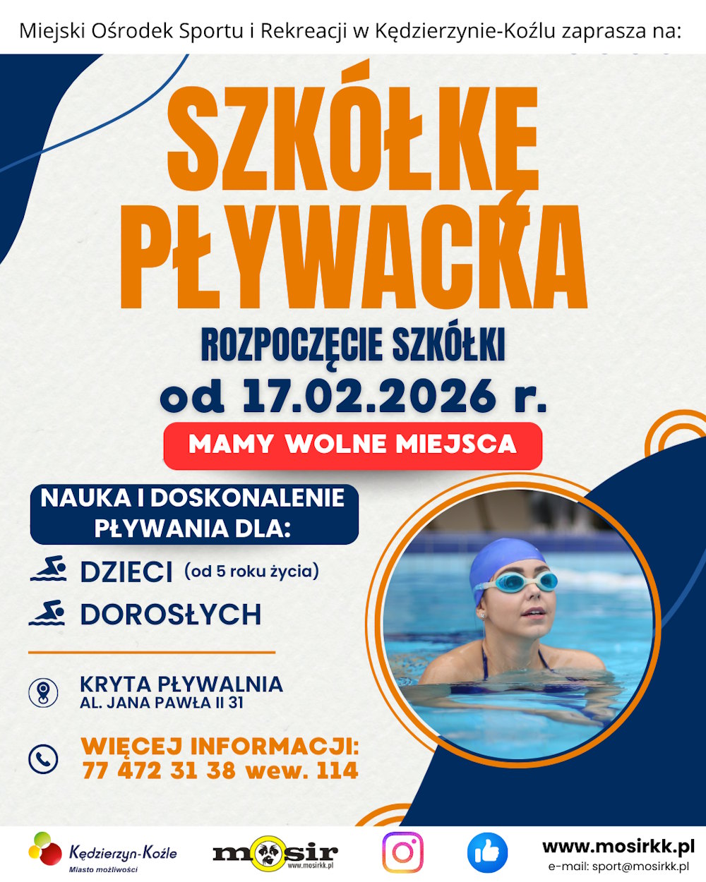 Treningi odbywają się na krytej pływalni przy alei Jana Pawła II. Oferta jest skierowana do szerokiego grona odbiorców, ponieważ grupy są podzielone na dzieci od 5. roku życia oraz dorosłych. Uczestnicy mogą wybrać poziom dopasowany do swoich umiejętności: naukę od zera lub doskonalenie znanych już technik pływackich.