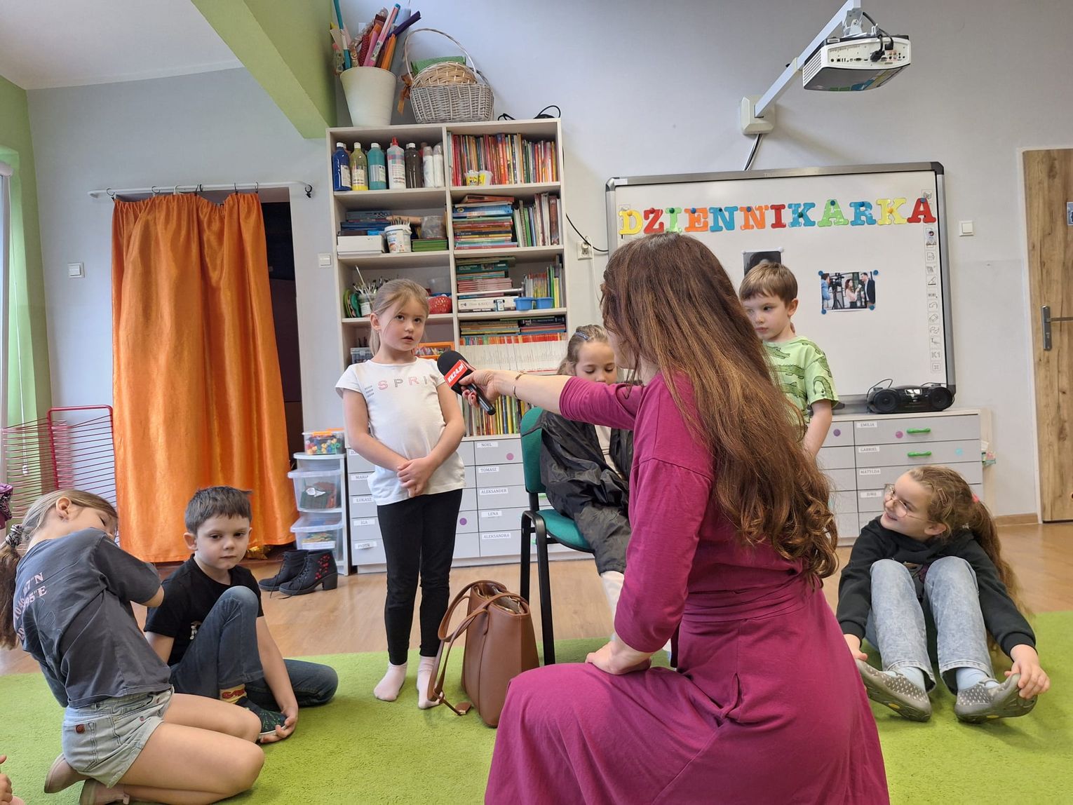Padło wiele pytań – o to, czy trudno zostać dziennikarzem, czy spotykamy znane osoby i jak powstaje wywiad. Ku naszemu miłemu zaskoczeniu nie brakowało odważnych ochotników, którzy postanowili spróbować swoich sił z mikrofonem w dłoni. To właśnie dzięki temu spotkaniu przedszkolaki przeprowadziły swoje pierwsze w życiu wywiady.