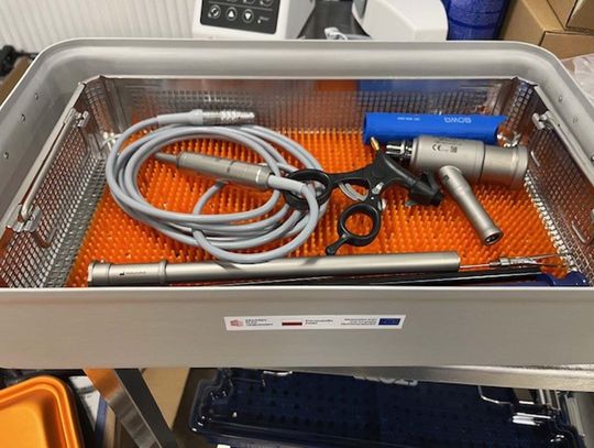 Do szpitala trafił także kolejny morcelator ginekologiczny – urządzenie wykorzystywane w małoinwazyjnych zabiegach laparoskopowych. Służy do rozdrabniania większych fragmentów tkanek i umożliwia ich usunięcie przez niewielkie nacięcia. Sprzęt znajduje zastosowanie m.in. przy laparoskopowej histerektomii oraz miomektomii, czyli usuwaniu mięśniaków macicy. Dzięki temu możliwe jest przeprowadzanie zabiegów bez konieczności dużego rozcięcia powłok brzusznych, co zwykle oznacza krótszy czas operacji i szybszą rekonwalescencję pacjentek.