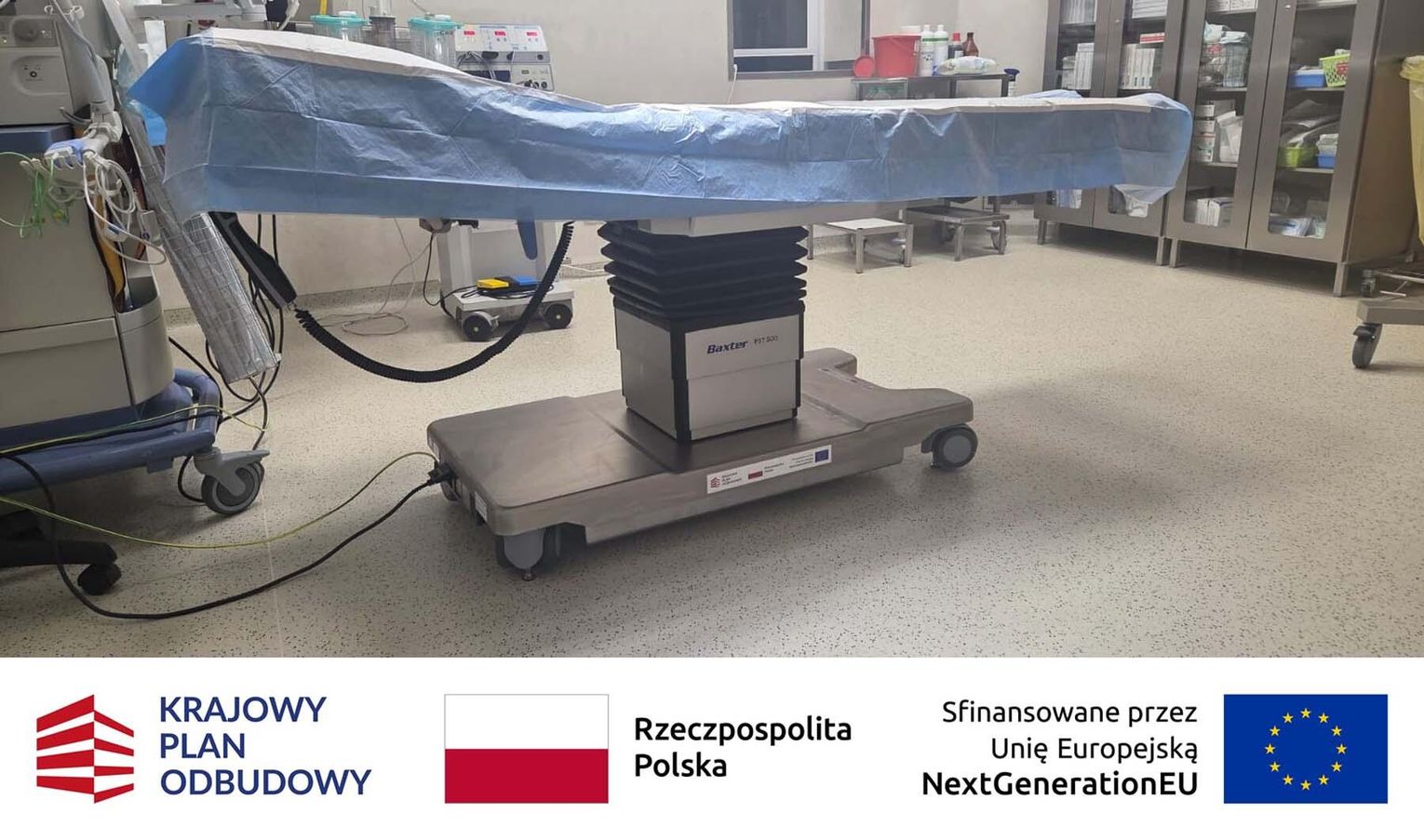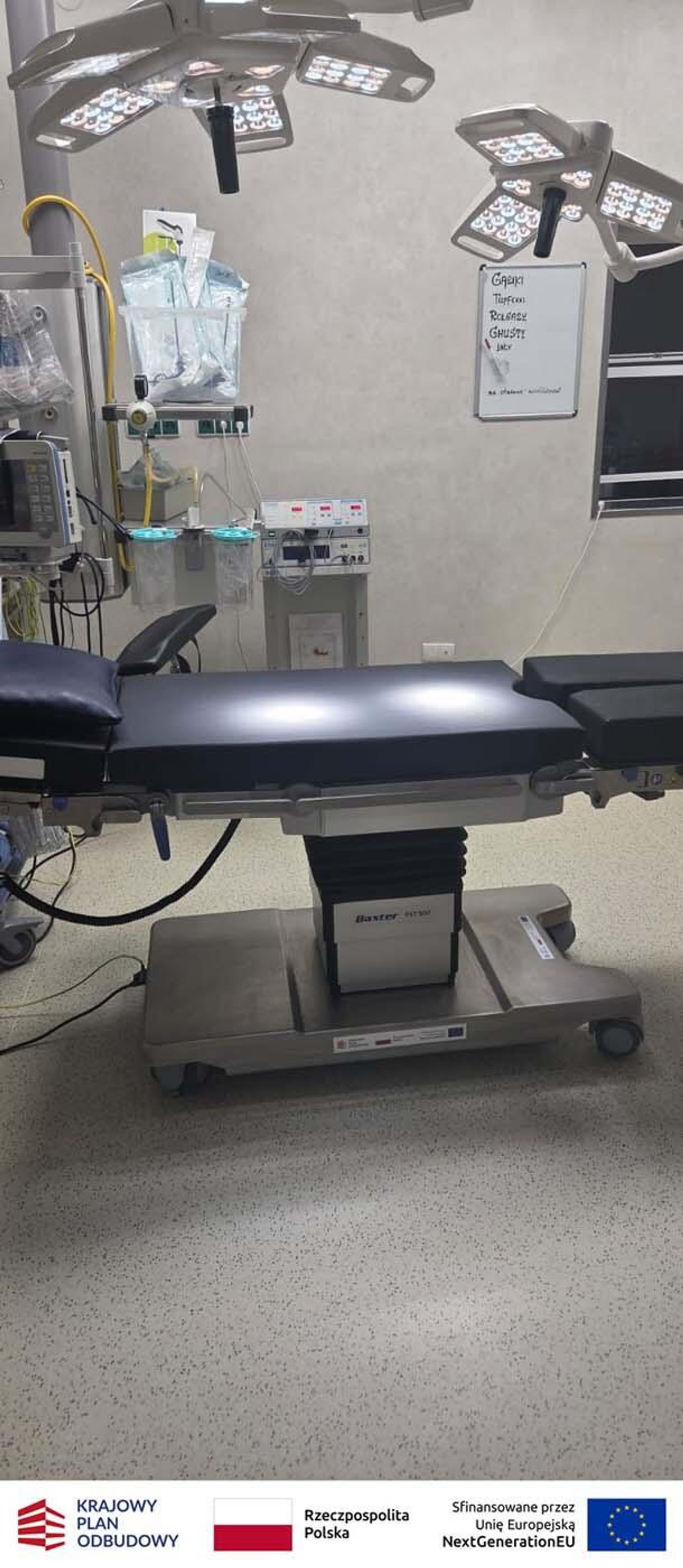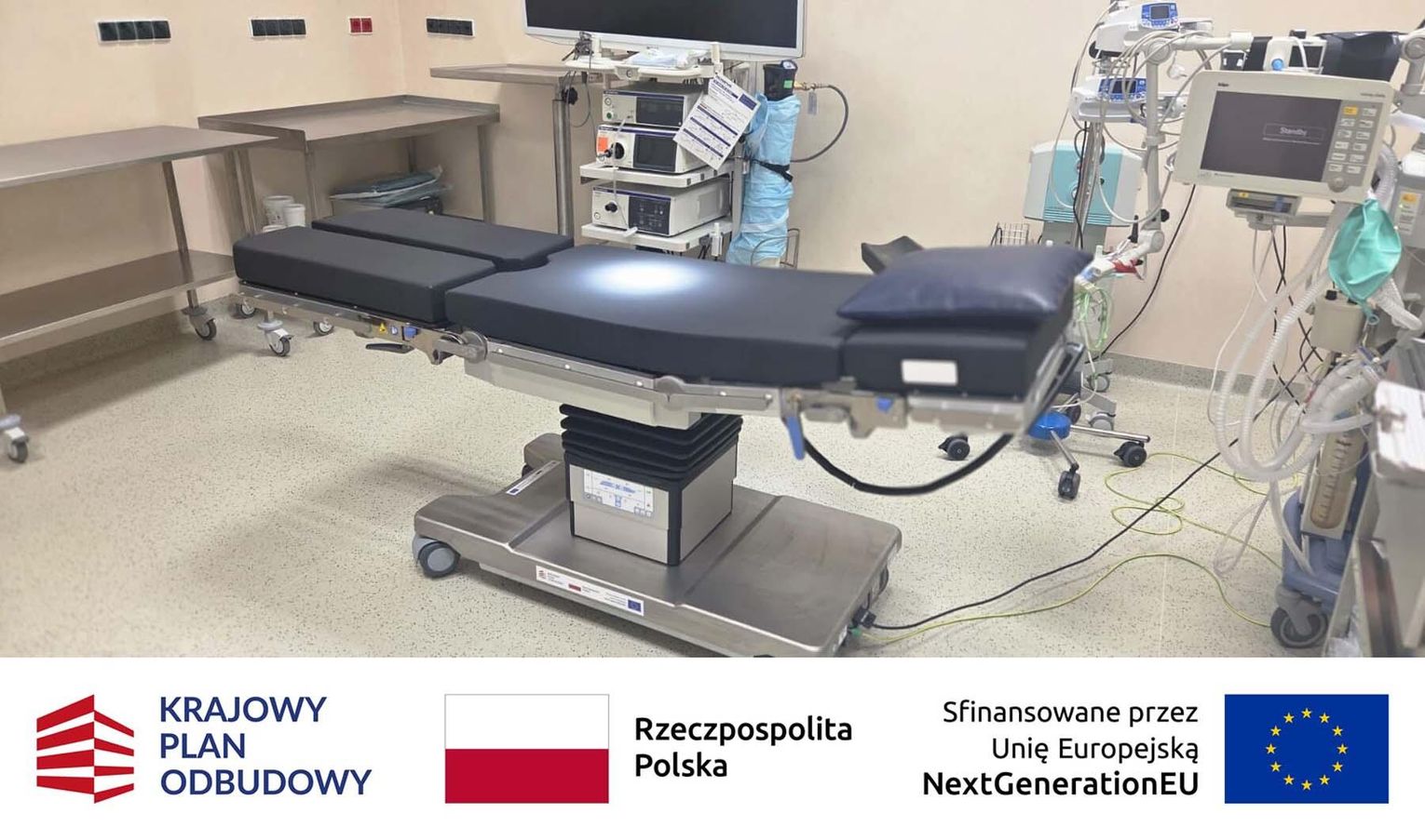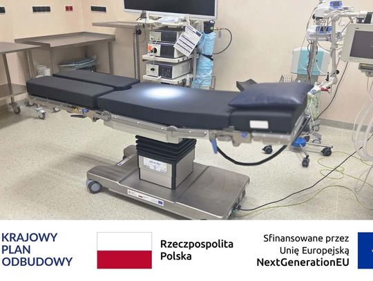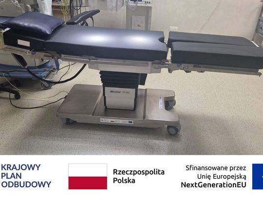 Blok operacyjny został doposażony w nowoczesne stoły operacyjne. To specjalistyczny sprzęt zapewniający zespołowi medycznemu bezpieczny i swobodny dostęp do pola operacyjnego. Stoły wyposażono w regulację hydrauliczną umożliwiającą precyzyjną zmianę wysokości i kąta nachylenia poszczególnych segmentów. Są przepuszczalne dla promieni RTG i posiadają modułową konstrukcję blatu, co pozwala na ich wykorzystanie w różnych typach operacji – m.in. w ginekologii i urologii. Dodatkowo zastosowano materace przeciwodleżynowe, które zmniejszają ryzyko powstawania odleżyn podczas długotrwałych zabiegów.