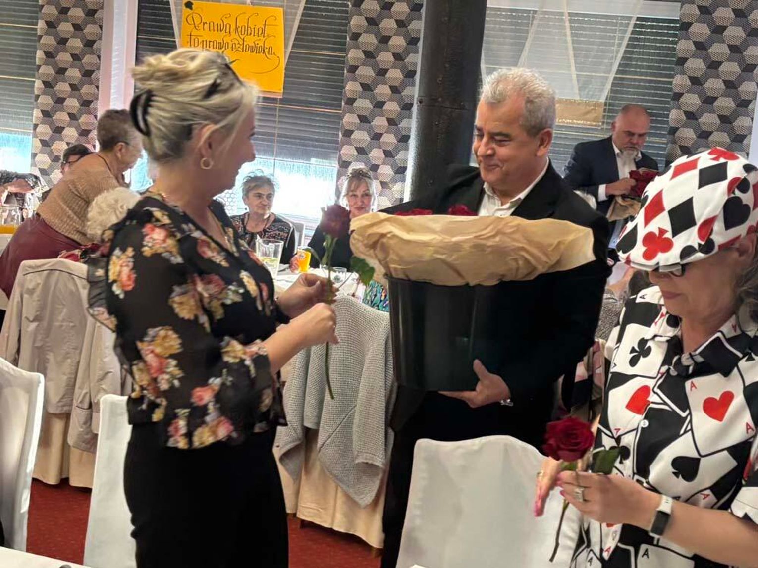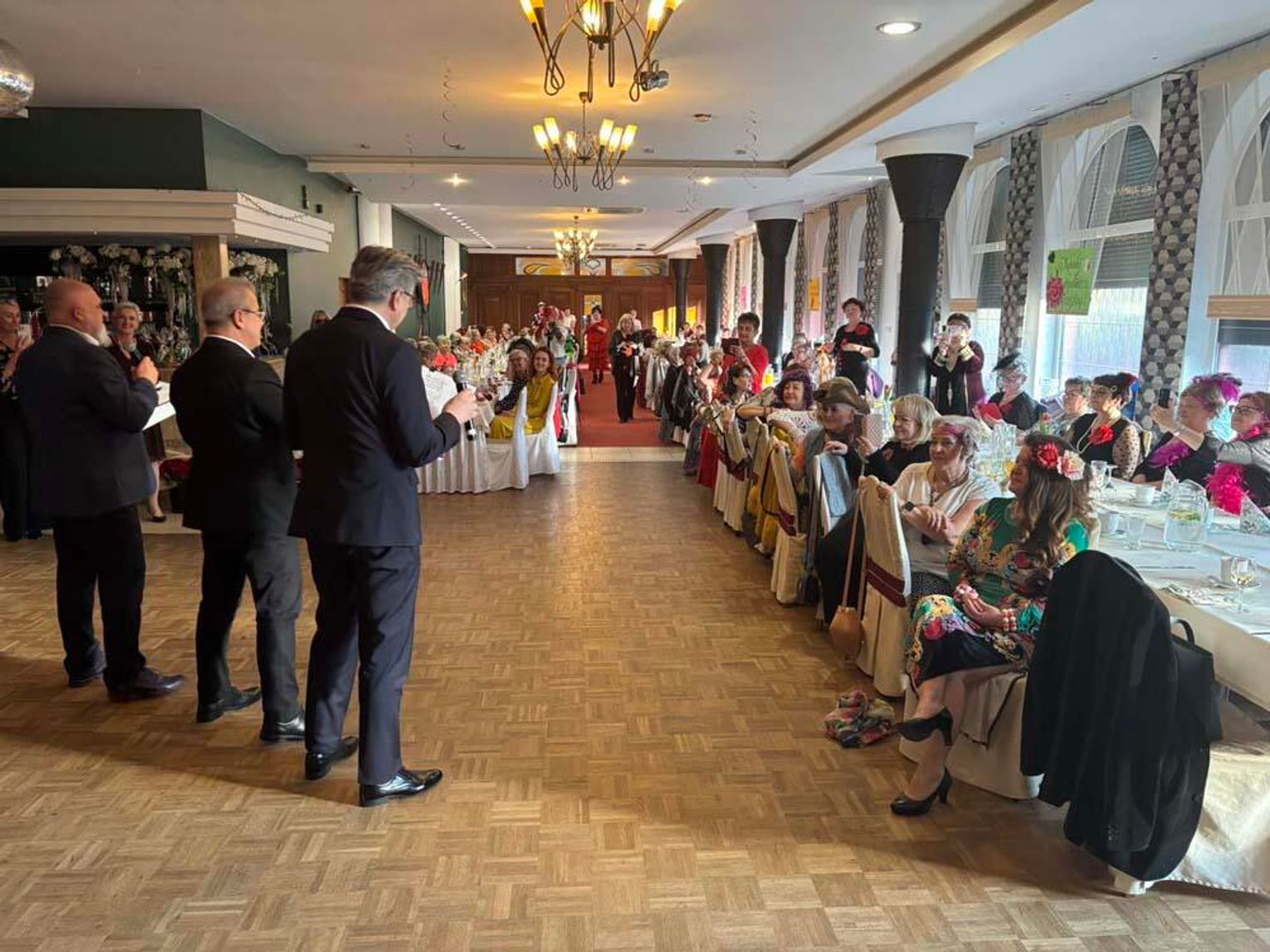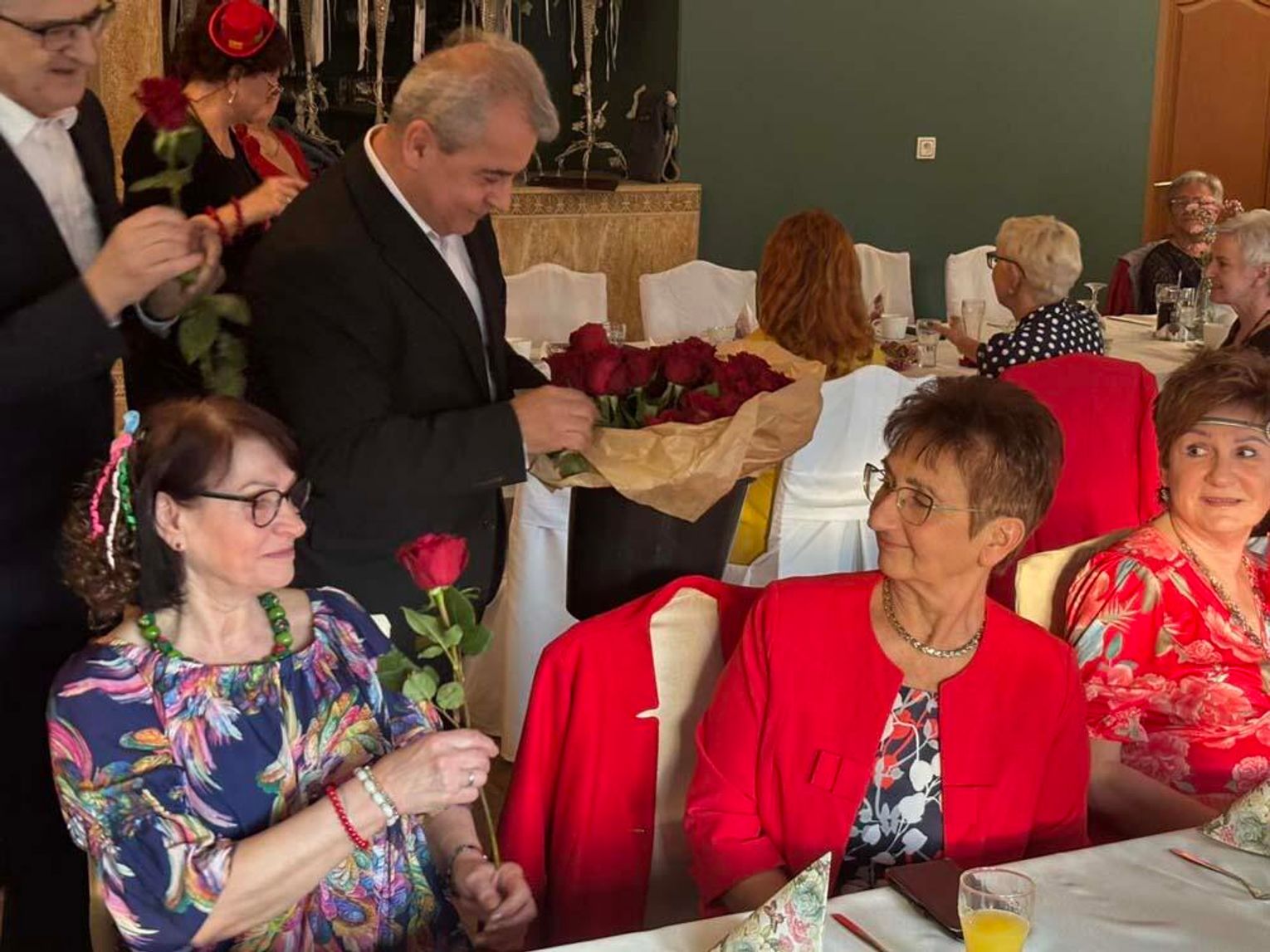 Specjalnie dla członkiń kędzierzyńskiego oddziału Polskiego Związku Emerytów, Rencistów i Inwalidów z autorskim recitalem wystąpili zastępcy prezydenta Krzysztof Wołynkiewicz i Tomasz Radłowski oraz sekretarz Zbigniew Romanowicz. „Tenorzy” z urzędu miasta śpiewająco złożyli najserdeczniejsze życzenia i wręczyli po czerwonej róży w każdą parę damskich dłoni.