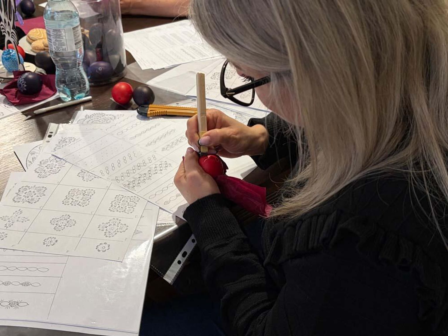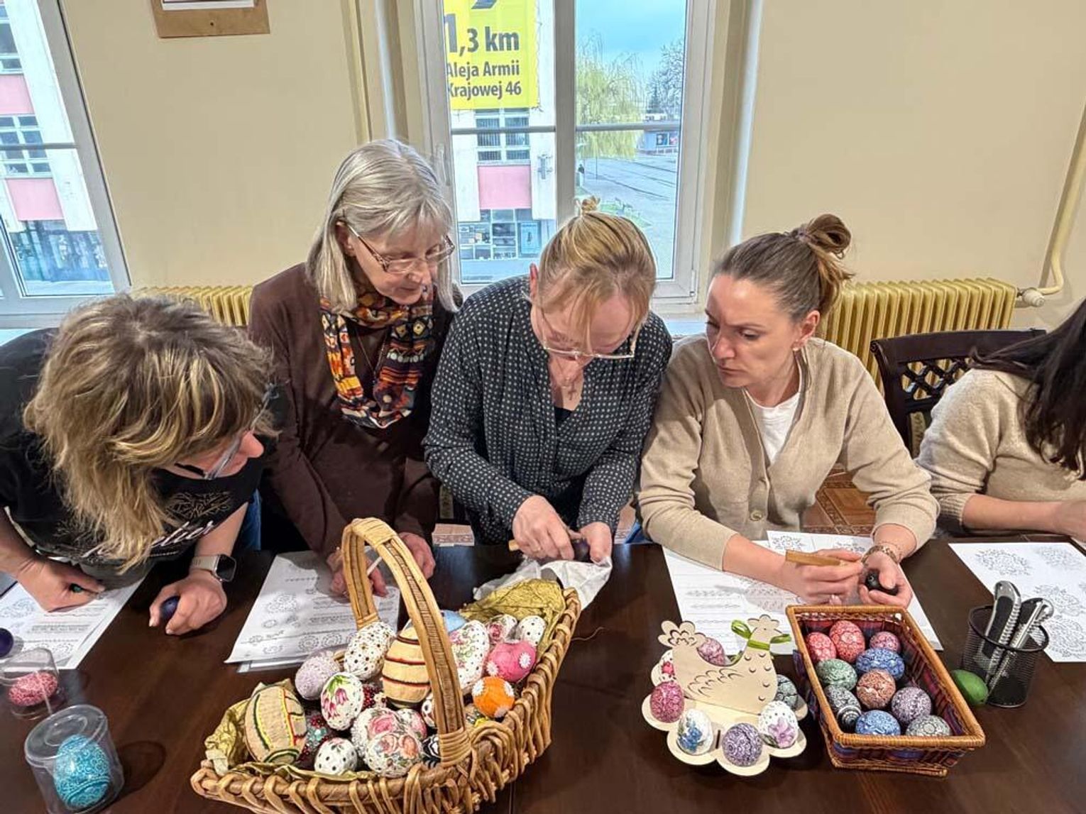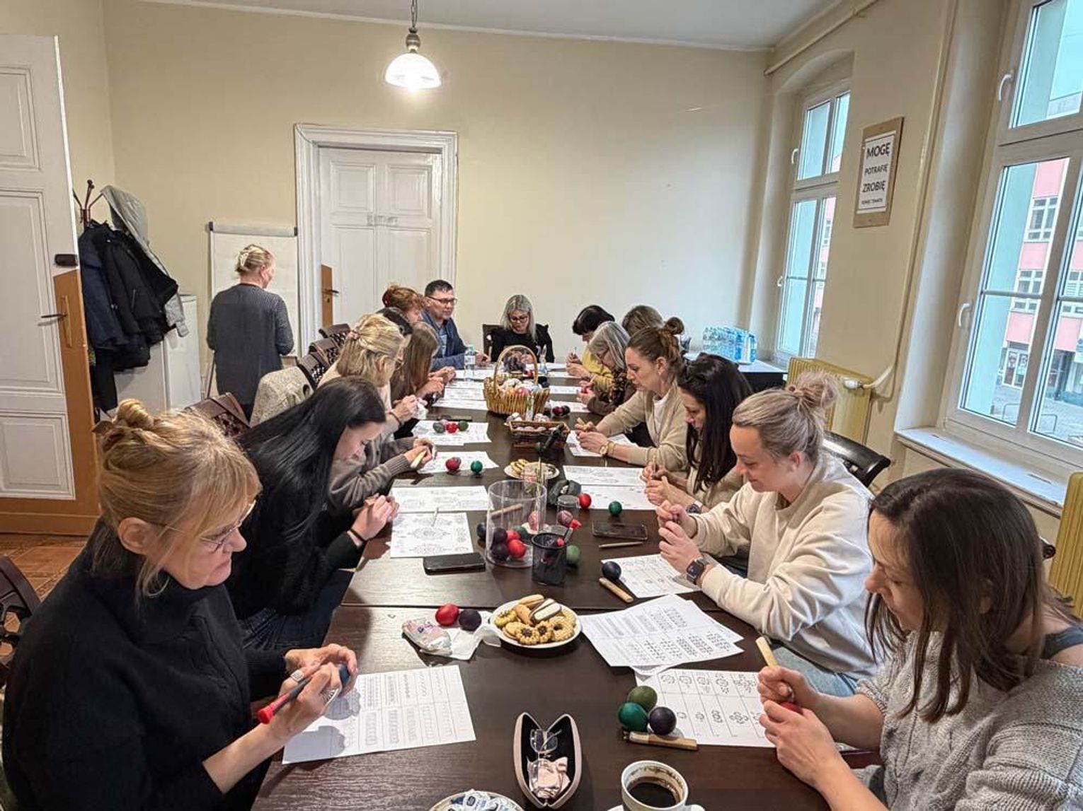 Zajęcia zorganizowane przez Radę Osiedla poprowadziła Grażyna Marondel, utalentowana lokalna twórczyni ludowa, która krok po kroku wprowadzała uczestników w świat kroszonek. Uczestnicy dowiedzieli się, jak przygotować jajka, jak powstają tradycyjne wzory i dlaczego w tej sztuce liczy się nie tylko pewna ręka, ale też wytrwałość, dokładność i wyobraźnia. Z każdą kolejną chwilą coraz wyraźniej było widać, że kroszonka to nie tylko wielkanocna ozdoba, ale też kawałek tradycji zapisany na skorupce.
