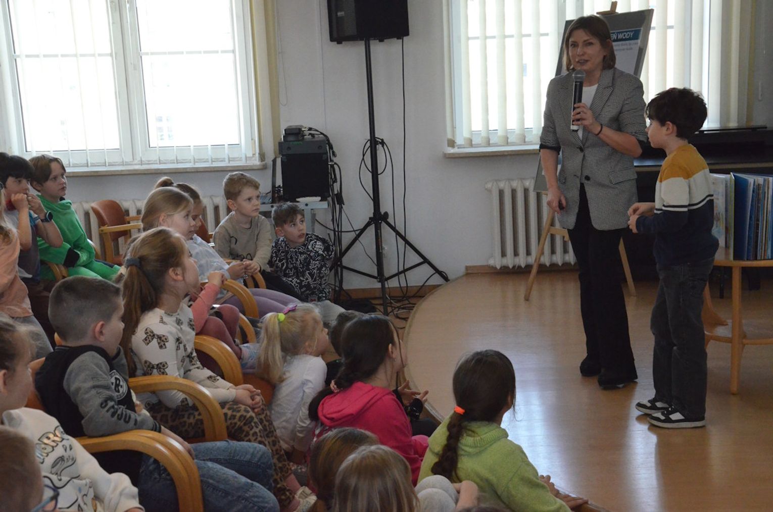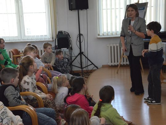 W części głównej wydarzenia dzieci wysłuchały prelekcji Doroty Wawryńczuk z MWiK. Przedstawicielka spółki w przystępny sposób wyjaśniła, jak skomplikowaną drogę musi pokonać każda kropla wody, zanim trafi do mieszkań. Uczniowie dowiedzieli się, że nasza woda pochodzi z dziewięciu studni głębinowych o głębokości ponad stu metrów.