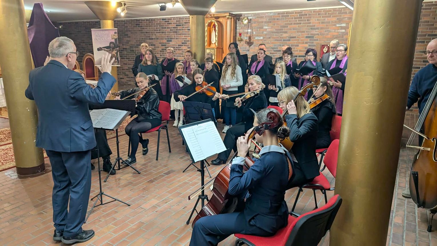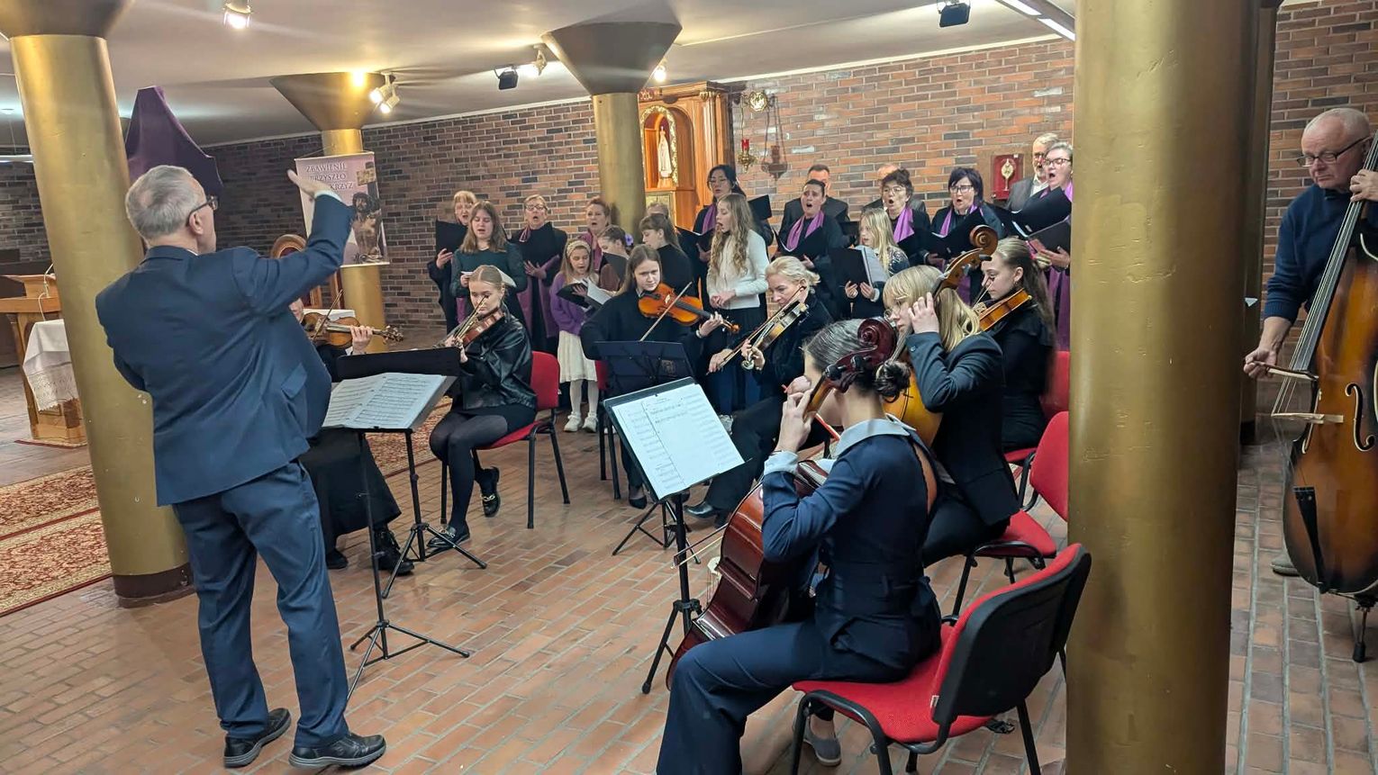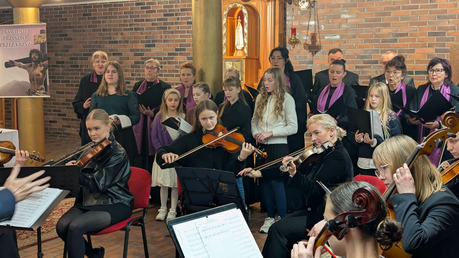 Na scenie zaprezentowali się uczniowie ogniska oraz chór Kandersino. W ich wykonaniu wybrzmiały utwory pasyjne i pieśni religijne, które wprowadziły słuchaczy w nastrój zbliżających się Świąt Wielkanocnych. Repertuar był spokojny i refleksyjny, ale nie brakowało w nim emocji.