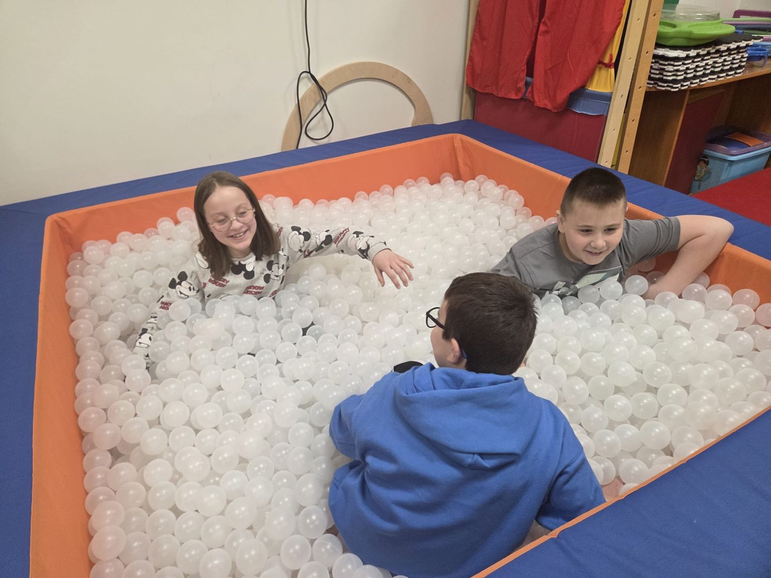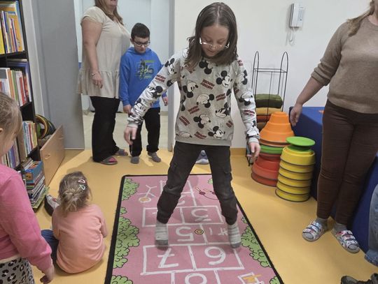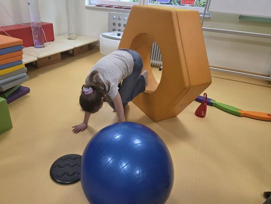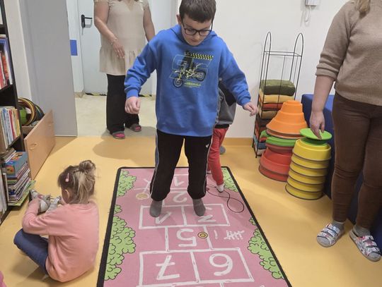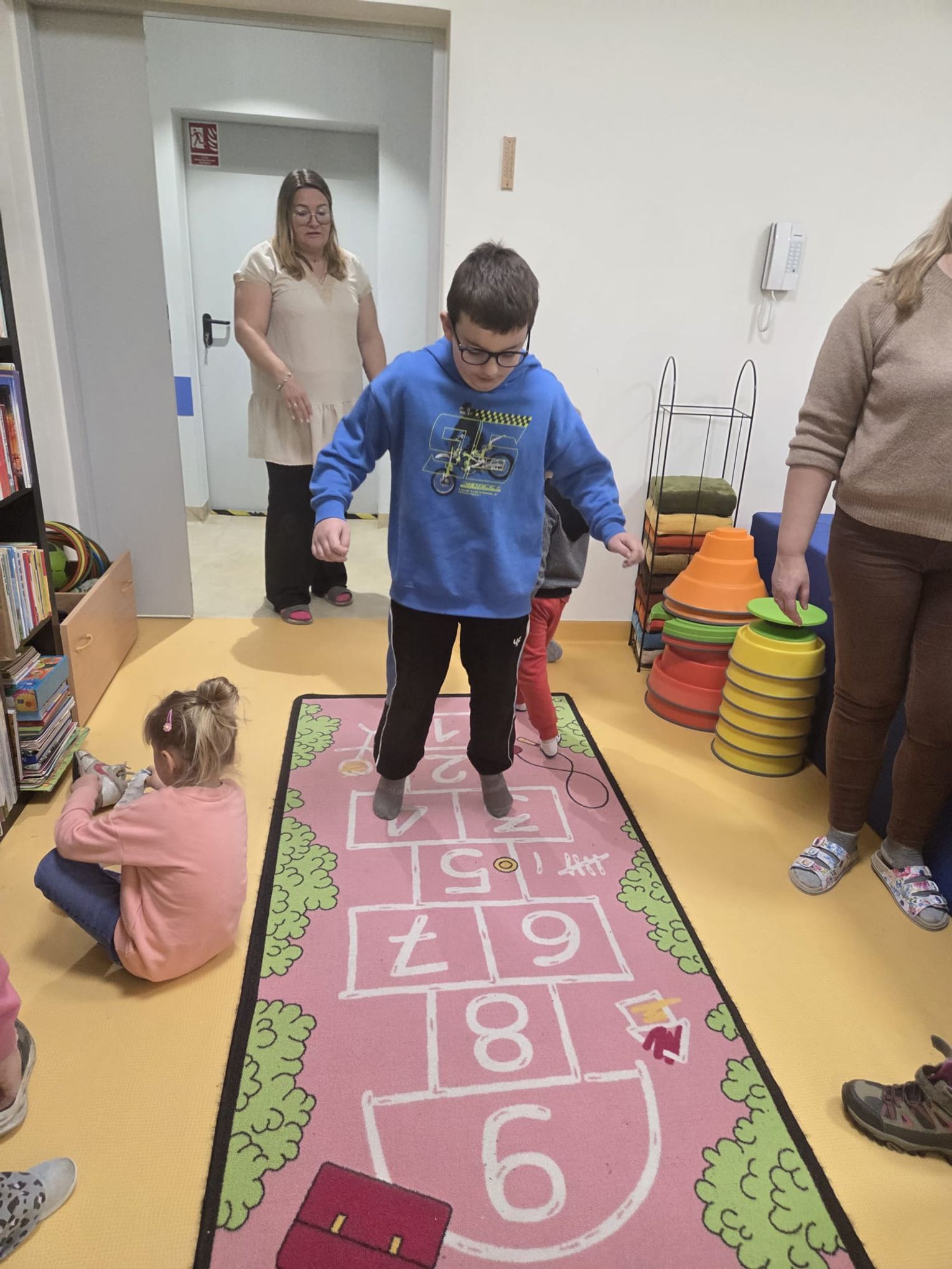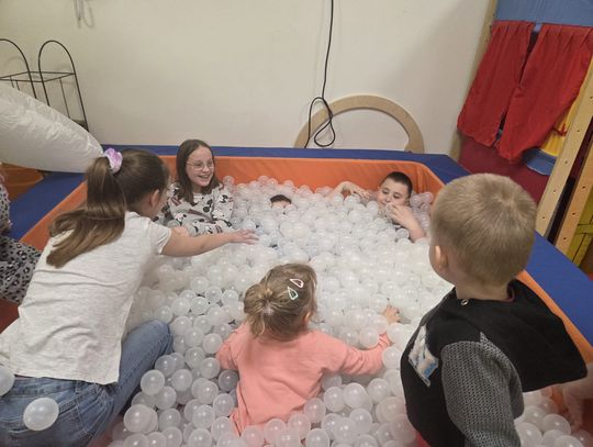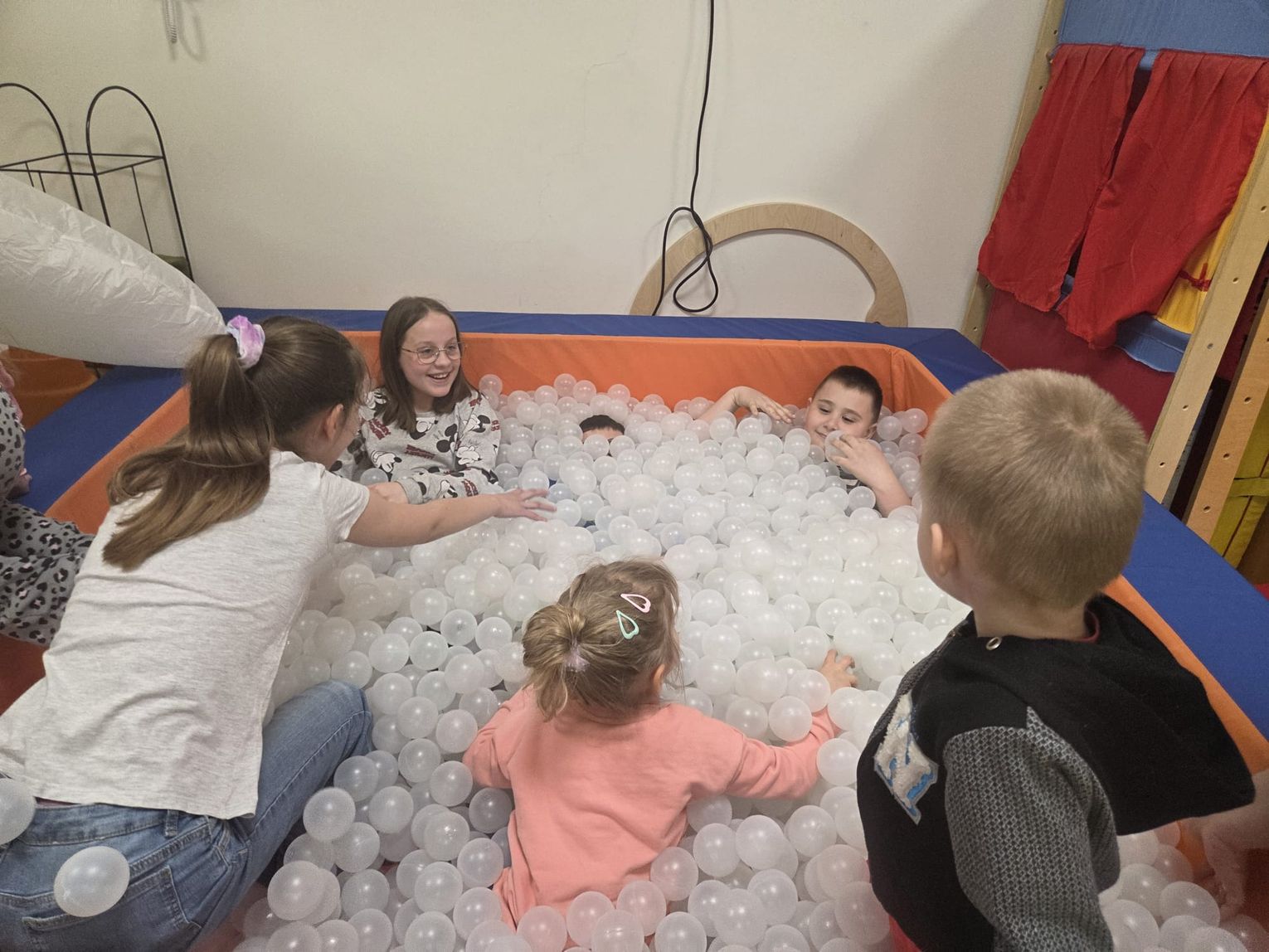 Od pierwszych chwil w sali panowała serdeczna atmosfera. Dzieci brały udział w zajęciach ruchowych w sali sensorycznej, rozwijając koordynację i równowagę, ale także ucząc się współpracy i zaufania. Wspólna aktywność szybko przełamała pierwsze lody i pozwoliła uczestnikom poczuć się swobodnie.