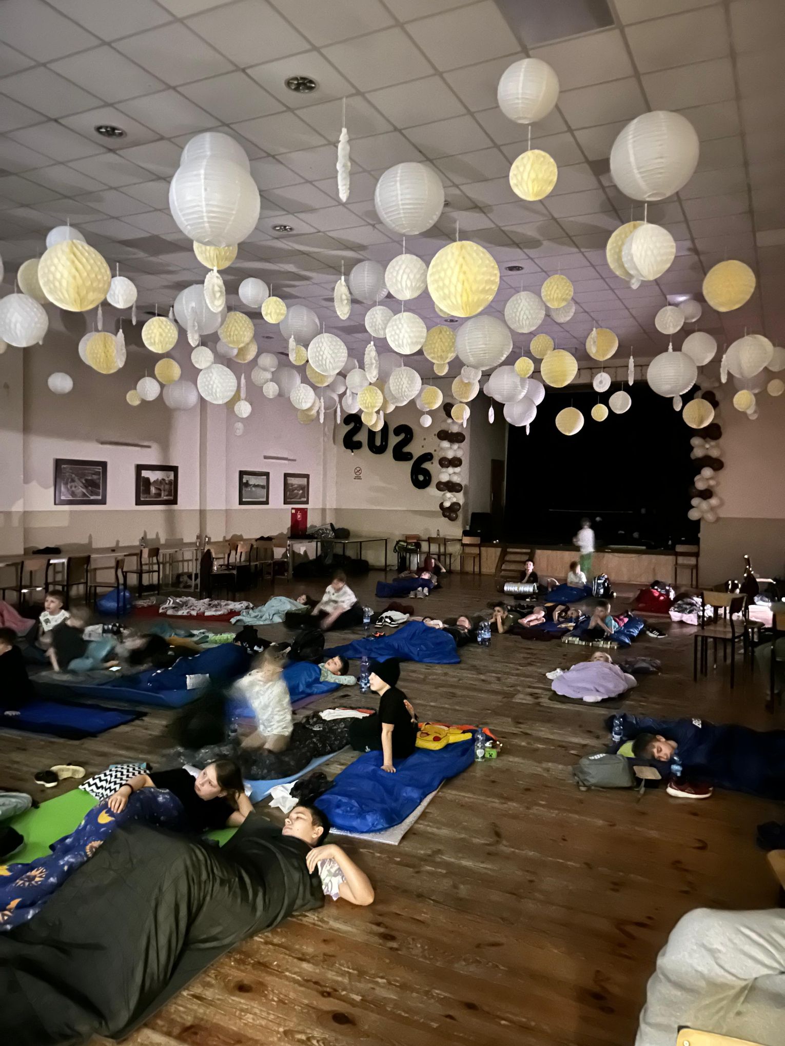Na uczestników czekała pizza, a zwieńczeniem tanecznej nocki był wspólny seans filmowy wyświetlany z projektora.