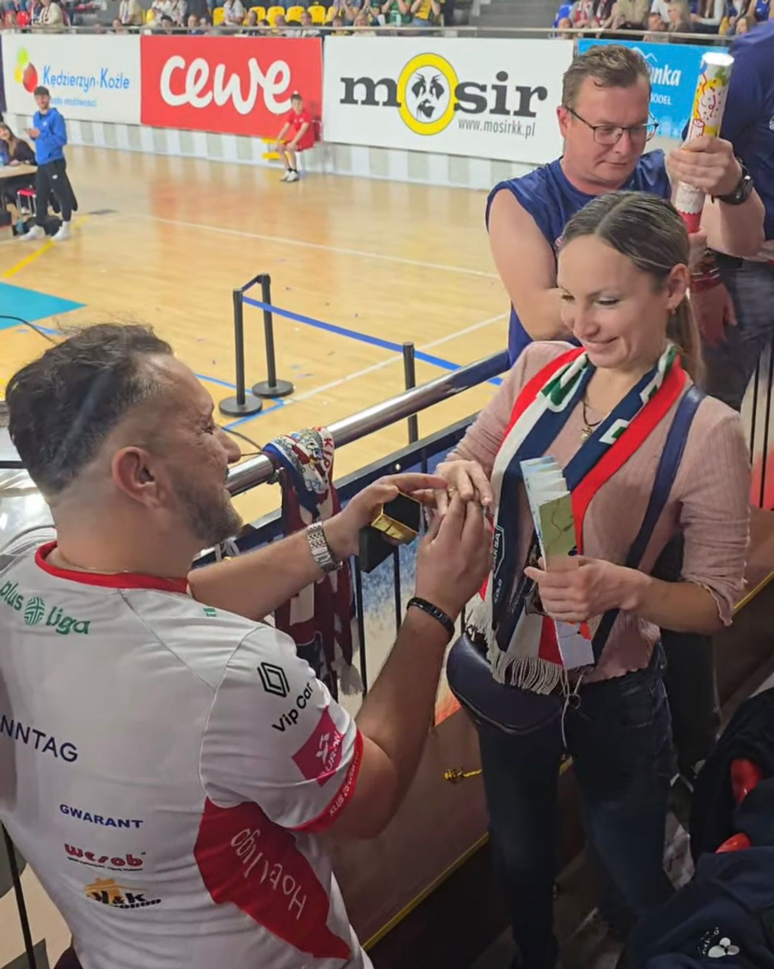 Wczoraj, podczas meczu ZAKSY Kędzierzyn-Koźle z Wartą Zawiercie, Mariusz postanowił zrobić kolejny krok. Wśród sportowych emocji, przy dopingu kibiców i atmosferze hali, uklęknął przed ukochaną i poprosił ją o rękę. Były łzy wzruszenia, była radość i ogromne zaskoczenie.