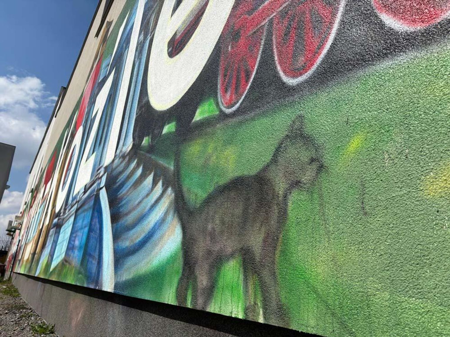 Malowidło znajduje się na bocznej ścianie Miejskiego Zarządu Budynków Komunalnych i jest doskonale widoczne z al. Jana Pawła II. Oprócz nazwy miasta przedstawia najbardziej charakterystyczne miejsca: kościół pw. św. Zygmunta i św. Jadwigi Śląskiej, Urząd Miasta, Starostwo Powiatowe, Basztę Montalemberta, halę sportową „Śródmieście”, dworzec PKP, sławięcicki Belweder i ruiny pałacu, kozielską basztę oraz zabytkową lokomotywę.