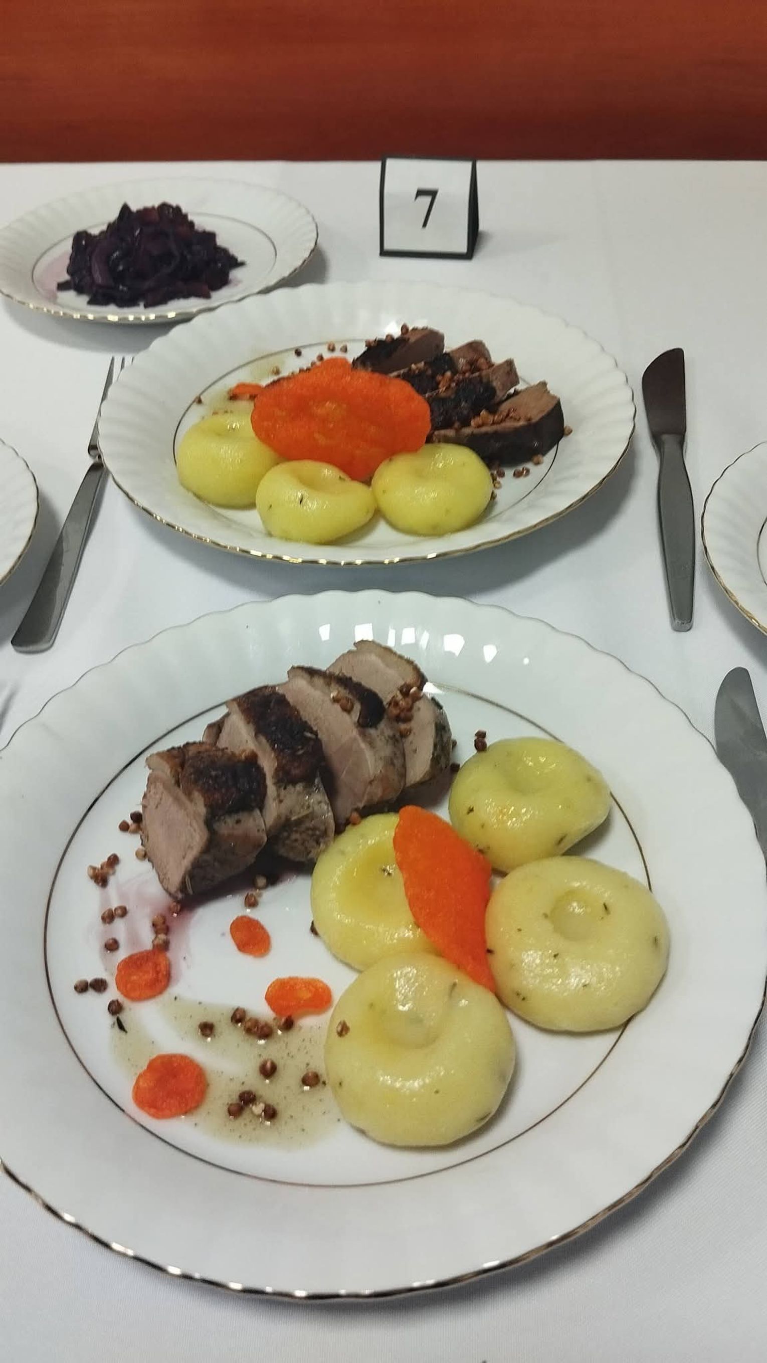Uczniowie zaprezentowali szeroki wachlarz umiejętności, przygotowując zarówno klasyczne, jak i nowoczesne interpretacje śląskich potraw. Na stołach pojawiły się m.in. delikatna szpajza, tradycyjna rolada, aromatyczna pierś z kaczki czy zupa krem z czerwonej kapusty w nowoczesnym wydaniu. Nie zabrakło także słodkich akcentów, takich jak śląska kopa czy marchewkowiec, które zachwycały nie tylko smakiem, ale i estetyką podania.