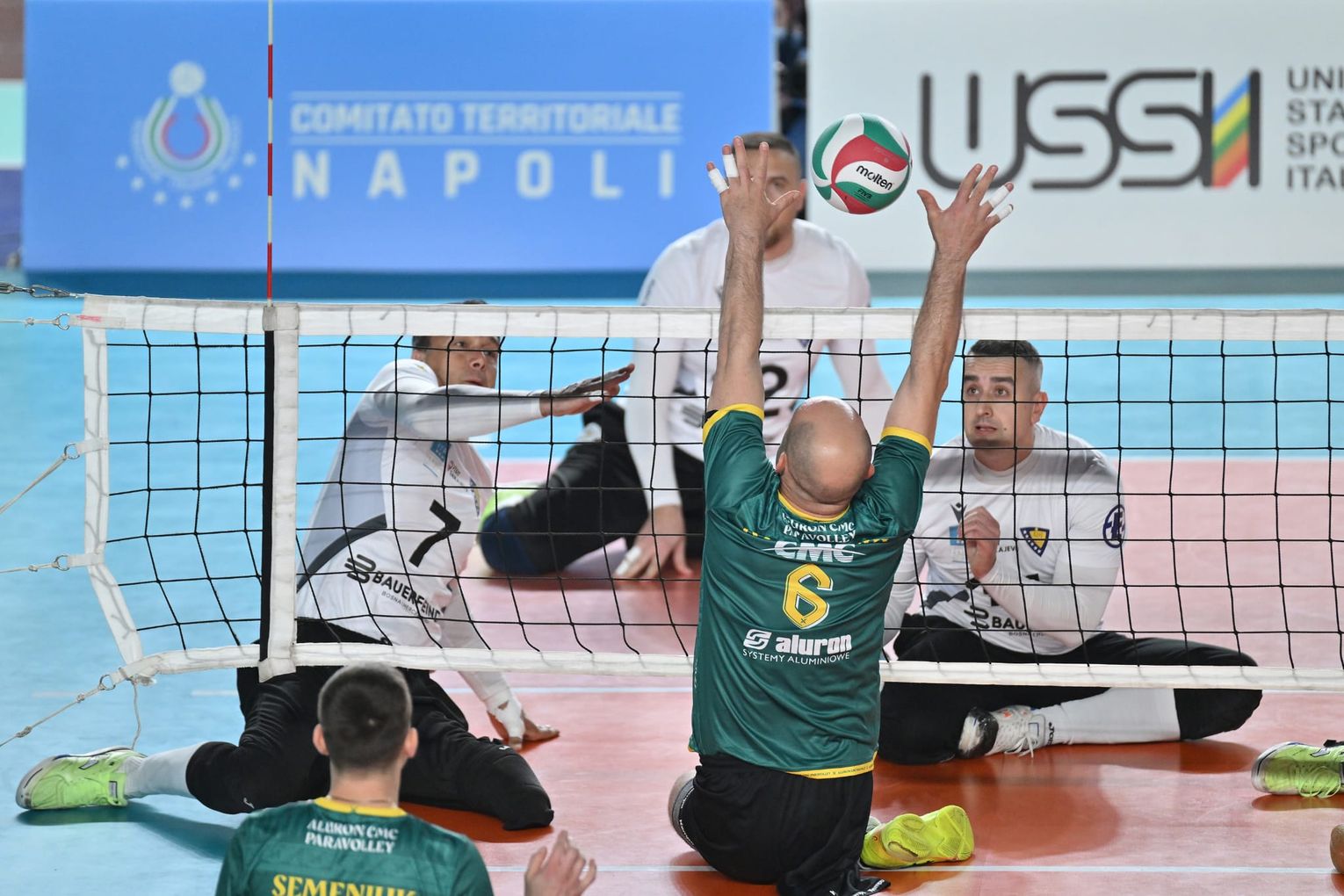 Obsada turnieju była wyjątkowo mocna. Na parkietach w Neapolu zameldowały się kluby z Turcji, Włoch, Niemiec, Chorwacji, Ukrainy oraz Bośni i Hercegowiny. Faza grupowa zaczęła się dla zespołu naszych zawodników znakomicie. Aluron pewnie pokonał ekipę z Turcji 3:0, a następnie, po niezwykle zaciętym i emocjonującym meczu, wygrał z gospodarzami – drużyną z Włoch – 3:2.