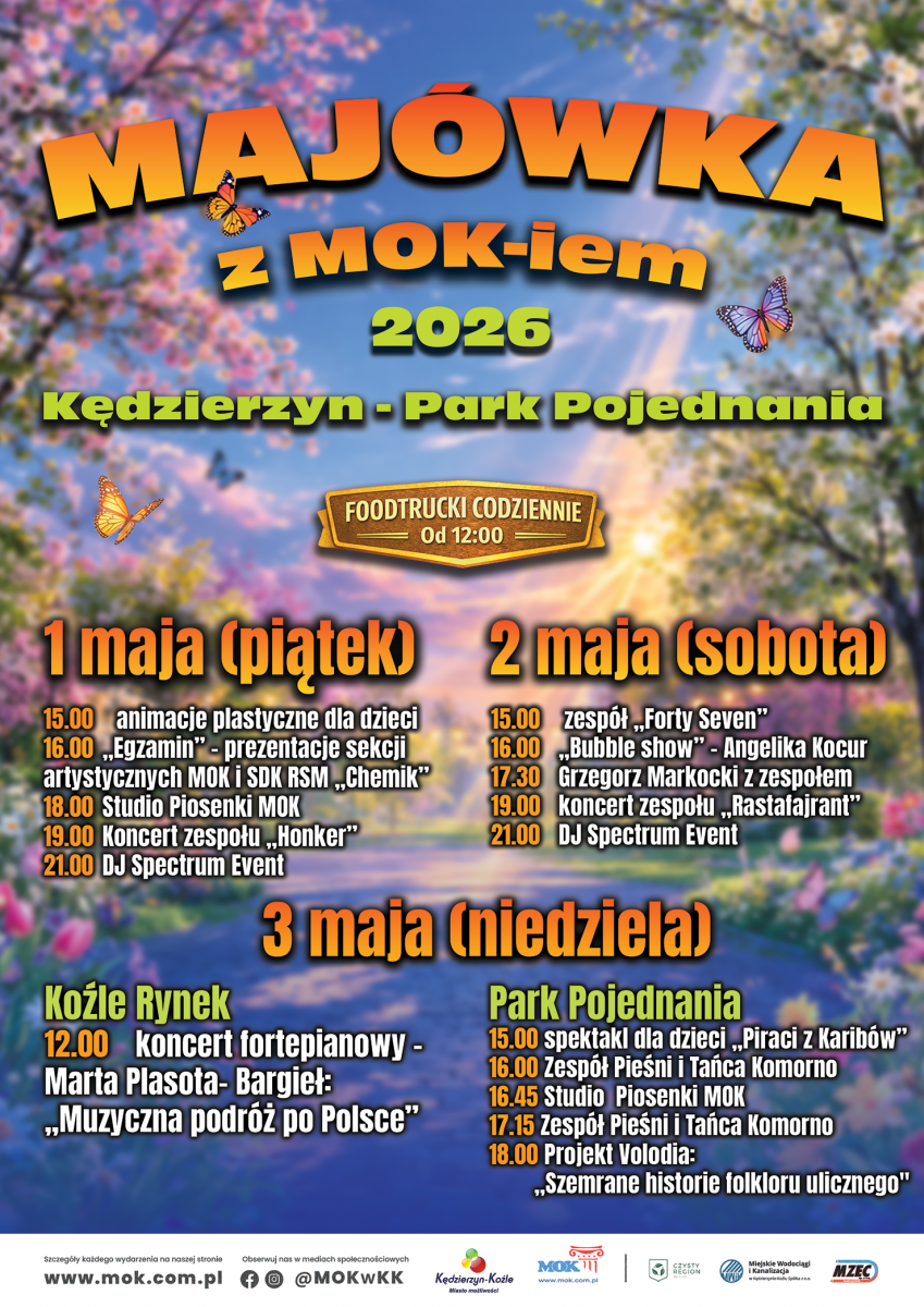 Już od piątku (1 maja) rusza program pełen atrakcji – od animacji dla dzieci, przez prezentacje artystyczne, aż po koncerty i wieczorne sety DJ-skie. Na scenie pojawią się m.in. uczestnicy zajęć MOK, a dzień zakończy koncert zespołu Honker i impreza z DJ-em.