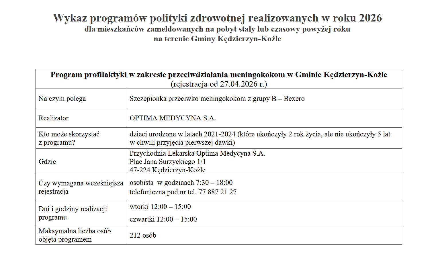 Właśnie wystartowały zapisy na darmowe szczepienia przeciwko meningokokom typ B. Adresowane są do dzieci urodzonych w latach 2021-2024, które w momencie przyjęcia pierwszej dawki szczepionki ukończyły 2 rok życia, ale nie ukończyły 5 lat. Z programu mogą skorzystać maluchy zameldowane na pobyt stały lub czasowy (trwający co najmniej 12 miesięcy) na terenie gminy Kędzierzyn-Koźle.